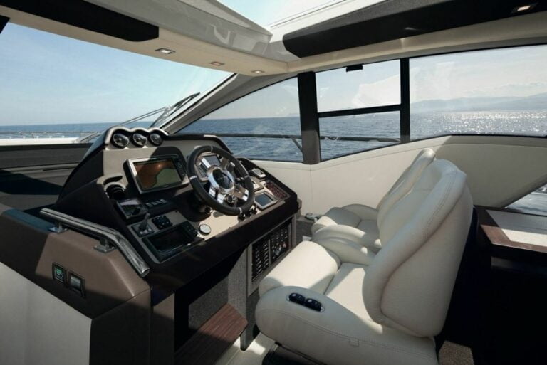EQUIPMENT: Volvo IPS joystick in wheelhouse and cockpit, Volvo electronic commander in wheelhouse, Volvo digital multifunctional display for engine datas, bow thruster, rudder angle indicator, trim interceptors system with indicator Raymarine Hybrid Touch 2 x 15` and 1 x 7´ touch multifunction system with integrated GPS plotter, radar open array HD color as overlay on Raymarine Hybrid Touch,15´, autopilot wheelhouse, tridata wheelhouse, VHF station Raymarine, wind indicator, SAT antenna KVH, search light, anchor chain counter, anchor wins, 70 m anchor chain, chain wash down, 2 x stern wins, huge table and chairs in cockpit lowerable for sunbed, wetbar, BBQ and fridge in cockpit furniture, electric sun shade in cockpit, dimmable lights in cockpit, acces gates on both sides, seating area and huge sunbed on bow, teak on bow, teak on sidewalks, teak in cockpit, teak on platform, glendenning cable master, stern shower cold/hot, hydraulic telescopic gangway Opacmare, fold out large platform, hard-sky top electric with sun shade