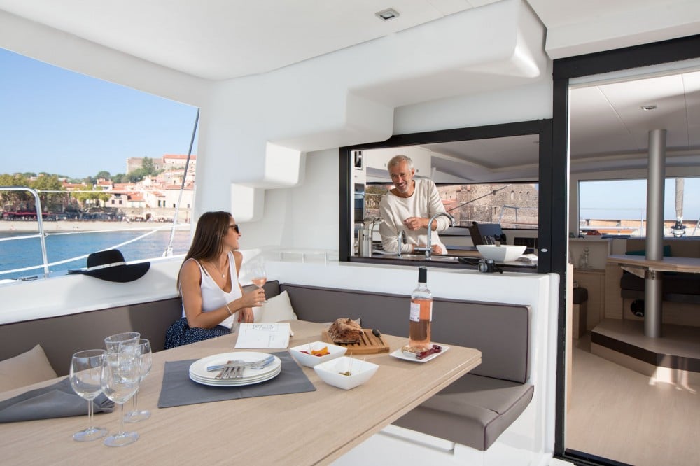 Galley: Dishwasher • Freezer - 90 L • 2 x Gas bottles • Gas cookers . Hot water . Ice maker • Kitchen utensils (Galley equipment, cutlery) . Oven . Refrigerator