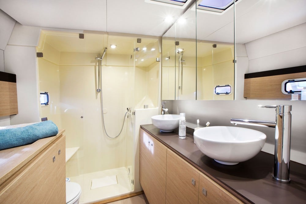 Yacht electrics: 220 volt socket • Air condition • 6 x Battery charger . Bilge pump – Electric • Generator • Heating • Inverter . Service batteries • Shore connection 220 V • Solar panels • Watermaker - desalinator