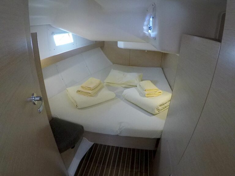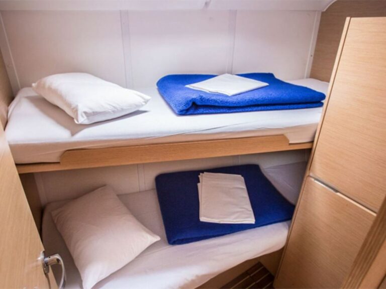 Layout with 3 double cabins, one bunk cabin and and 2 saloon beds, 2 bathrooms with the shower. Can accomodate 10 people in total on board for a thrilling family holidays!