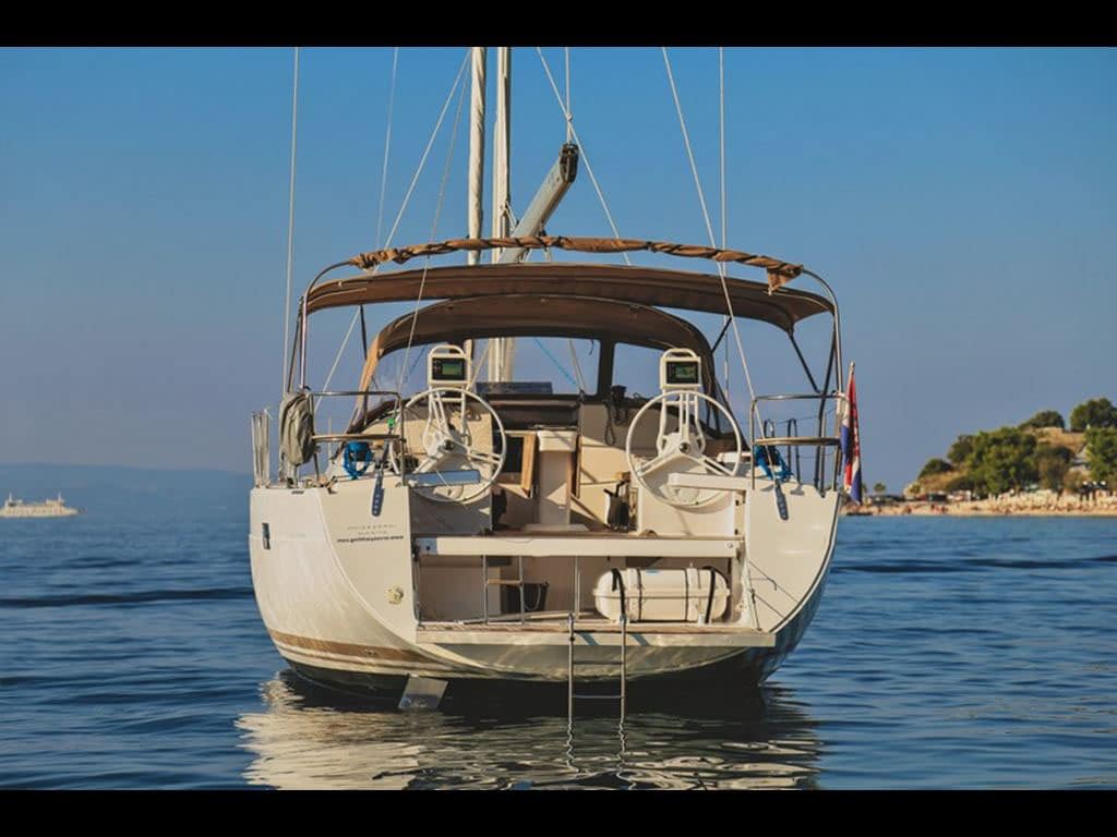 Sleek, comfortable and luxurious, the Elan Impression 50 has the biggest cockpit in the class, with a U-shaped seating arrangement and a sun deck on the bow. The big swimming platform on the stern will make exploring the forgotten lagoons of some sun-kissed isles easier, because it is electrically operated. The cockpit separates the working area aft from the lounging area, with a big bimini placed overhead to protect the crew and/or passengers from any negative climatological influences. The Impression has a fixed cockpit table, with sturdy handrails and two folding parts, that create a spacious table. The cockpit fridge pulls out underneath the seats, with the life raft located underneath the helmseat. The Elan 50 Impression twin rudders and wheels, from where you can reach the primary and secondary winches. The deck can be customized to feature a self-tacking jib system, a through-deck furling genoa and a furling gennaker.
