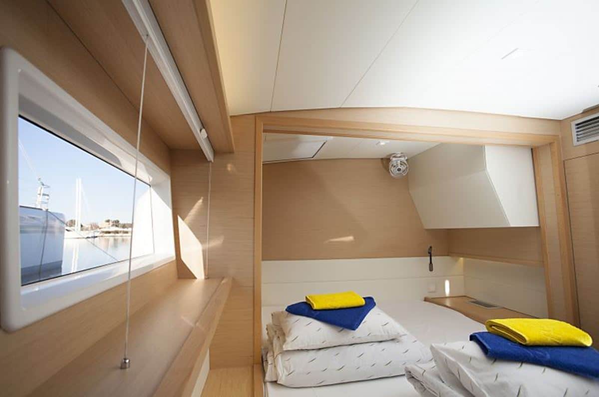 With almost 16 meters in length and more than 8,5 meters of width, this catamaran offers huge amount of space on and below deck, as well as unprecedented level of comfort throughout. The centre of living at sea is well protected and generous cockpit, whilst one level up there is even a flybridge with magnificent view, central helm station and adjacent lounge area. Another and more private relaxation zone with loungers is at the bow.