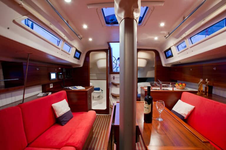 A cruiser – racer in the truest sense, this yacht is designed for sailors whose appetite for performance persists is well beyond the race course. The Salona 35 is designed by J&J Design and optimized by Jason Ker. The stern offers a thoroughly practical cockpit comfortable for cruising and functional for racing. It also features an easily convertible open to closed transom. Two spacious lockers with an additional dedicated locker for two gas bottles, as well as two standard carbon fiber steering wheels and high – end sailing gear all make single handed sailing easier. It comes standard with a two wheels system, and cascade backstay that can ensure simple and accurate rig tuning. The S35’s deep rudder is designed for optimum “grip” and maximum “feel,” offering responsive and reliable handling across all sea conditions and points of sail. A teak dinette table appropriate for cruising can be easily removed for a race and then just as easily replaced. The S35 features the ideal accommodations for family to stay overnight comfortably during leisure trips or for the crew to use during regattas. Standard interior is a two cabin version with spacious head and large navigation table, functional galley and folding bunk beds in the salon (optional).