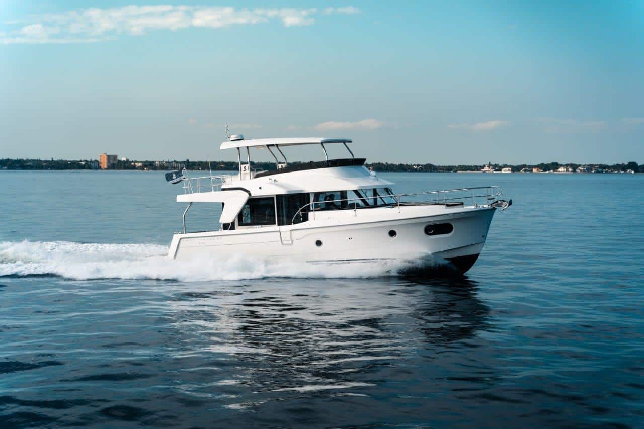 Her robust look instantly inspires safety. This feeling is confirmed on board with a very practical open deck plan. Large walkways and several hand rails make passengers feel extra safe moving around. On the large flybridge, up to four people can sit up front underway, facing the sea. The cockpit is wonderfully modular so that you can enjoy the best of what the sea has to offer. The transom provides access to a large swim platform where you can enjoy leisure activities while at anchor. Already easy to handle with its twin engine, the Swift Trawler 47 Fly can be equipped with joysticks that will make manoeuvring in the harbour child’s play.